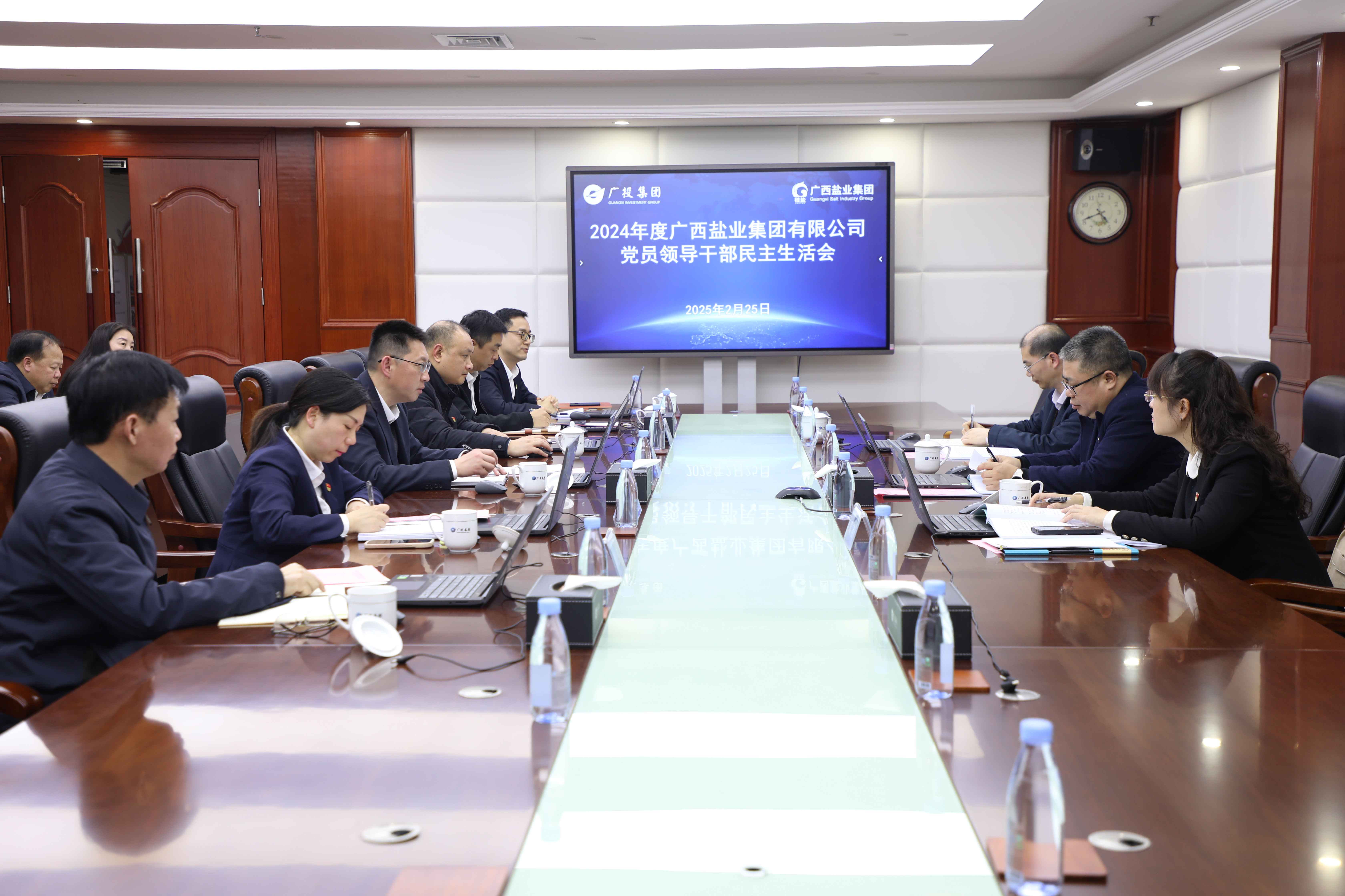 2月25日,廣西鹽業(yè)集團(tuán)召開2024年度黨員領(lǐng)導(dǎo)干部民主生活會(huì)。集團(tuán)副總經(jīng)理唐少瀛到會(huì)指導(dǎo)。鹽業(yè)集團(tuán)黨委書記、董事長邱潮涌主持會(huì)議并作總結(jié)講話。