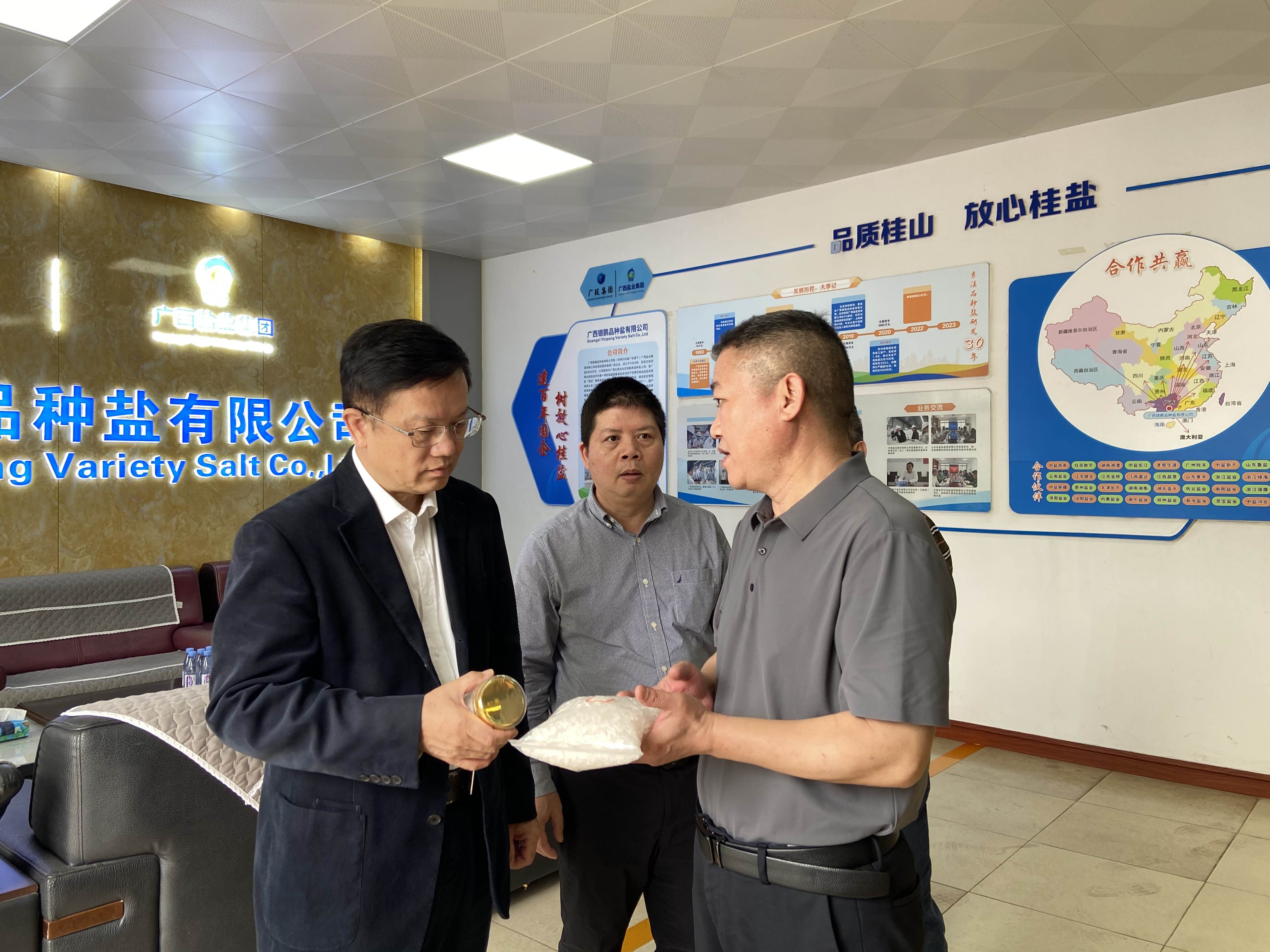 2025年3月13日至14日,廣投集團(tuán)派駐鹽業(yè)集團(tuán)專(zhuān)職外部董事陸生平、何雁等一行到廣西鹽業(yè)集團(tuán)有限公司欽州分公司、廣西銀鵬品種鹽有限公司進(jìn)行調(diào)研,深入了解企業(yè)經(jīng)營(yíng)、食鹽銷(xiāo)售、資產(chǎn)管理及創(chuàng)新研發(fā)等工作情況,并對(duì)兩家公司未來(lái)發(fā)展提出指導(dǎo)性意見(jiàn)。
